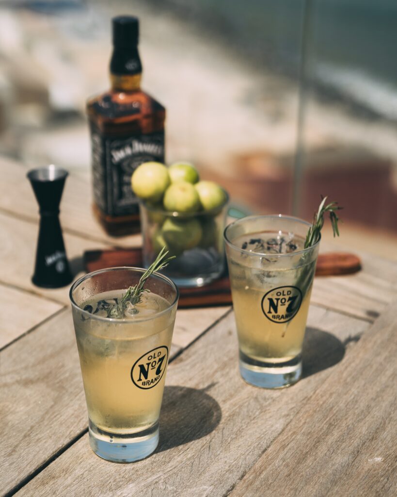 Primero, en un vaso largo coloca cubos de hielo. Luego, echa Jack Daniel’s N° 7, el zumo de limón y completar con el ginger ale. Rápidamente, remueve suavemente para no perder las burbujas del ginger ale. Por último, decora con un romero, el cual se debe encender levemente para aromatizar.