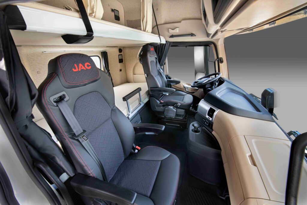 En el interior, el tracto remolcador del camión entrega un equipamiento renovado de gran confort para el conductor y copiloto. Cuenta con un diseño de piso plano y una altura interior de la cabina que alcanza los 1.95 metros, permitiendo que los conductores puedan caminar parados.
