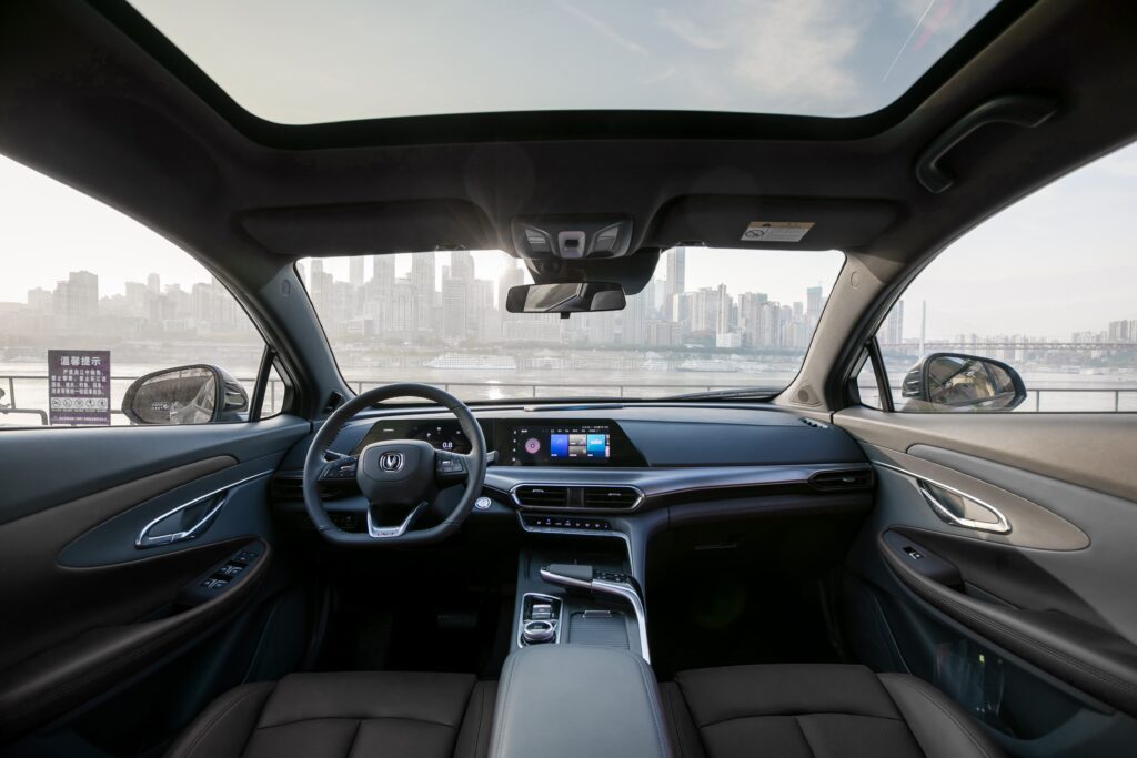 Con una estética futurista curva y muy limpia, se suma algo muy característico que es el primer spoiler desplegable en forma de U en la parte del techo, inspirado en el diseño aerodinámico puede dirigir el flujo del aire de manera efectiva y mejorar la estabilidad del cuerpo a altas velocidades. Asimismo, cuenta con un techo panorámico cuyo vidrio puede filtrar efectivamente el 97% de los rayos ultravioleta para proteger a los pasajeros y mantener la temperatura.