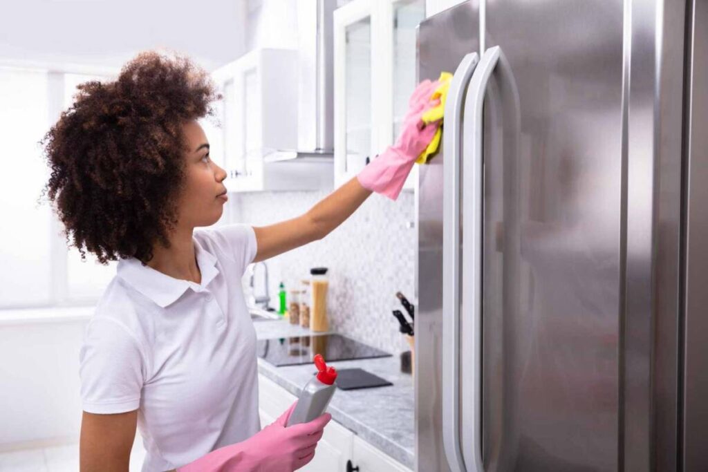 Pasa el paño húmedo por el área superior, inferior, esquinas, compartimientos y demás. De esta manera, evitarás malos olores y eliminarás restos que pueden estar adheridos a las superficies. Si estas son de vidrio, evita utilizar agua muy caliente, ya que podrían romperse. Si deseas una mayor desinfección, puedes optar por una solución de agua con cloro.