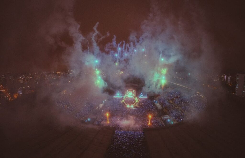 El show incluyó un imponente montaje de luces, efectos de pirotecnia y visuales sorprendentes, creando una experiencia inolvidable para los miles de fanáticos que llenaron el estadio.